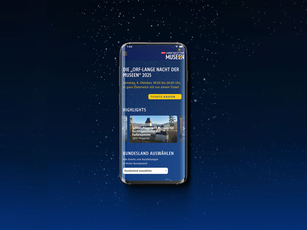 Am Samstag, dem 4. Oktober 2025, findet die diesjährige „ORF-Lange Nacht der Museen“ in ganz Österreich statt. Bereits zum 25. Mal ermöglicht es der ORF mit der „ORF-Lange Nacht der Museen“ den Besucherinnen und Besuchern, mit nur einem Ticket eine Vielzahl an Museen zu besuchen. Auch heuer beteiligen sich wieder zahlreiche Museen und Galerien und öffnen ihre Türen von 18.00 bis 24.00 Uhr.